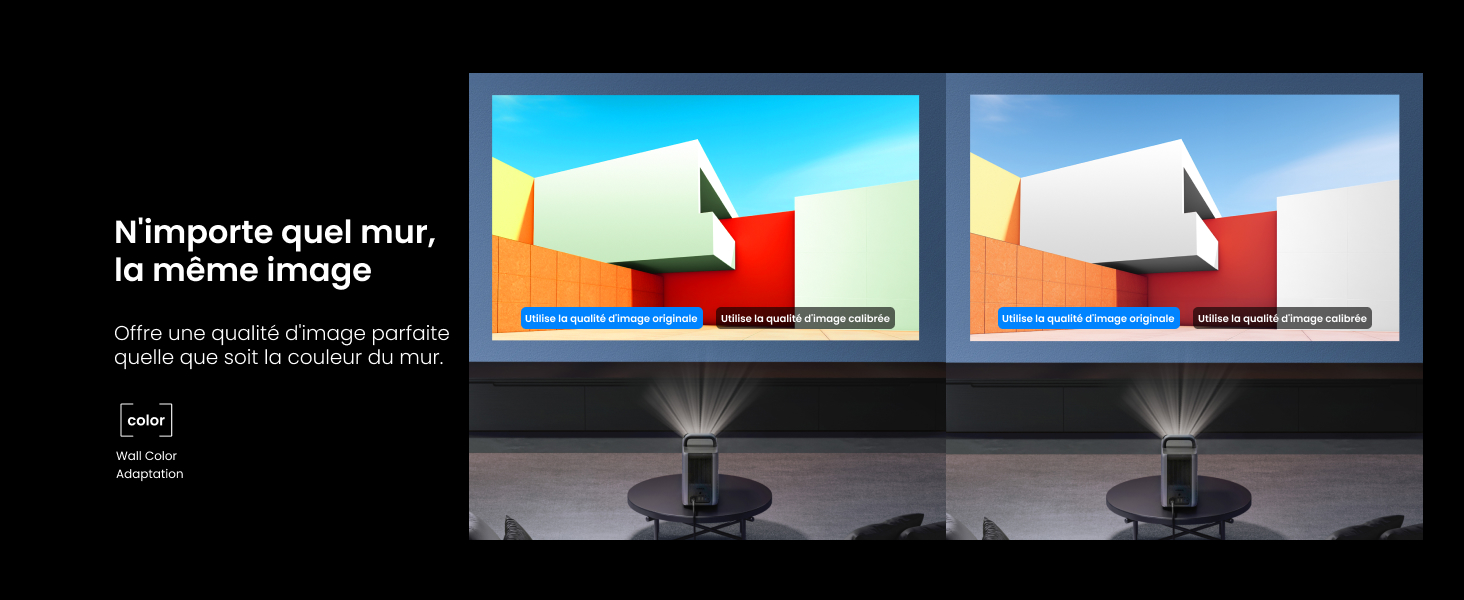 - Configuration intelligente IEA 4.0 : Cosmos 4K SE s'adapte intelligemment à votre espace grâce à l'autofocus et à la correction du trapèze en temps réel, à l'évitement automatique des obstacles et à l'ajustement de l'écran, à l'adaptation de la couleur des murs, à l'adaptation de la lumière ambiante, et bien plus encore.