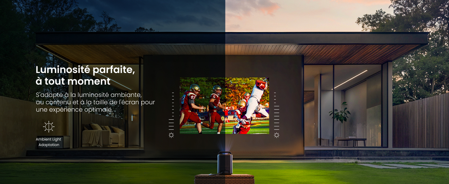 - 4K Dolby Vision, écran géant de 200″ : Profitez d'images 4K époustouflantes, d'une luminosité 40 fois supérieure, d'un contraste 50 fois plus élevé et de couleurs plus vraies que nature grâce à Dolby Vision. La taille maximale de l'écran est de 200″ pour une expérience véritablement cinématographique.