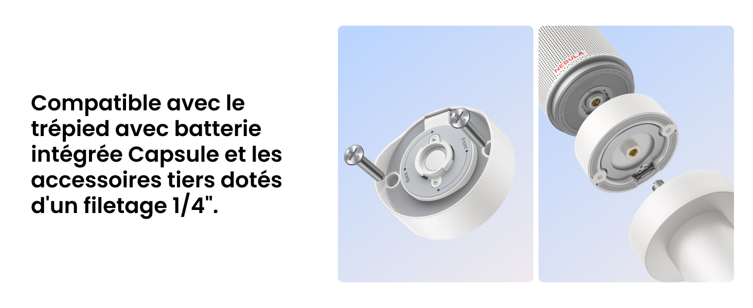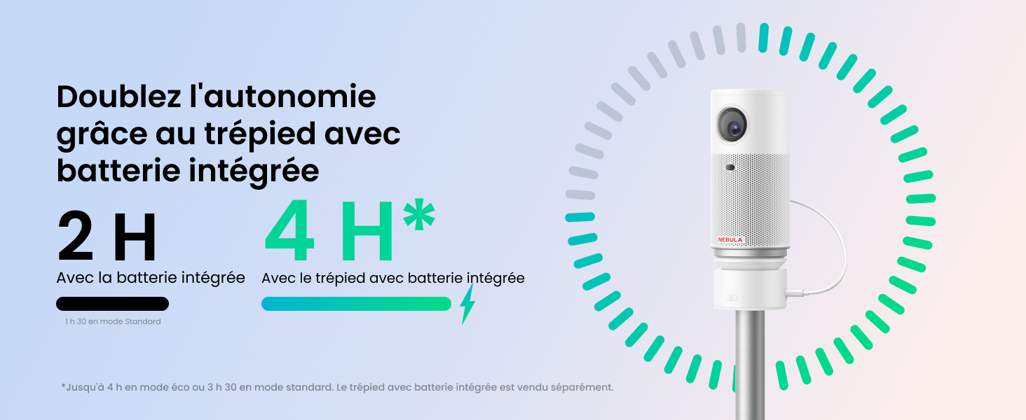 Plus d'accessoires, plus de possibilités : notre base vous permet d'ajuster l'angle du projecteur ou de le fixer au mur, vous permettant de visionner votre contenu dans la situation la plus confortable.